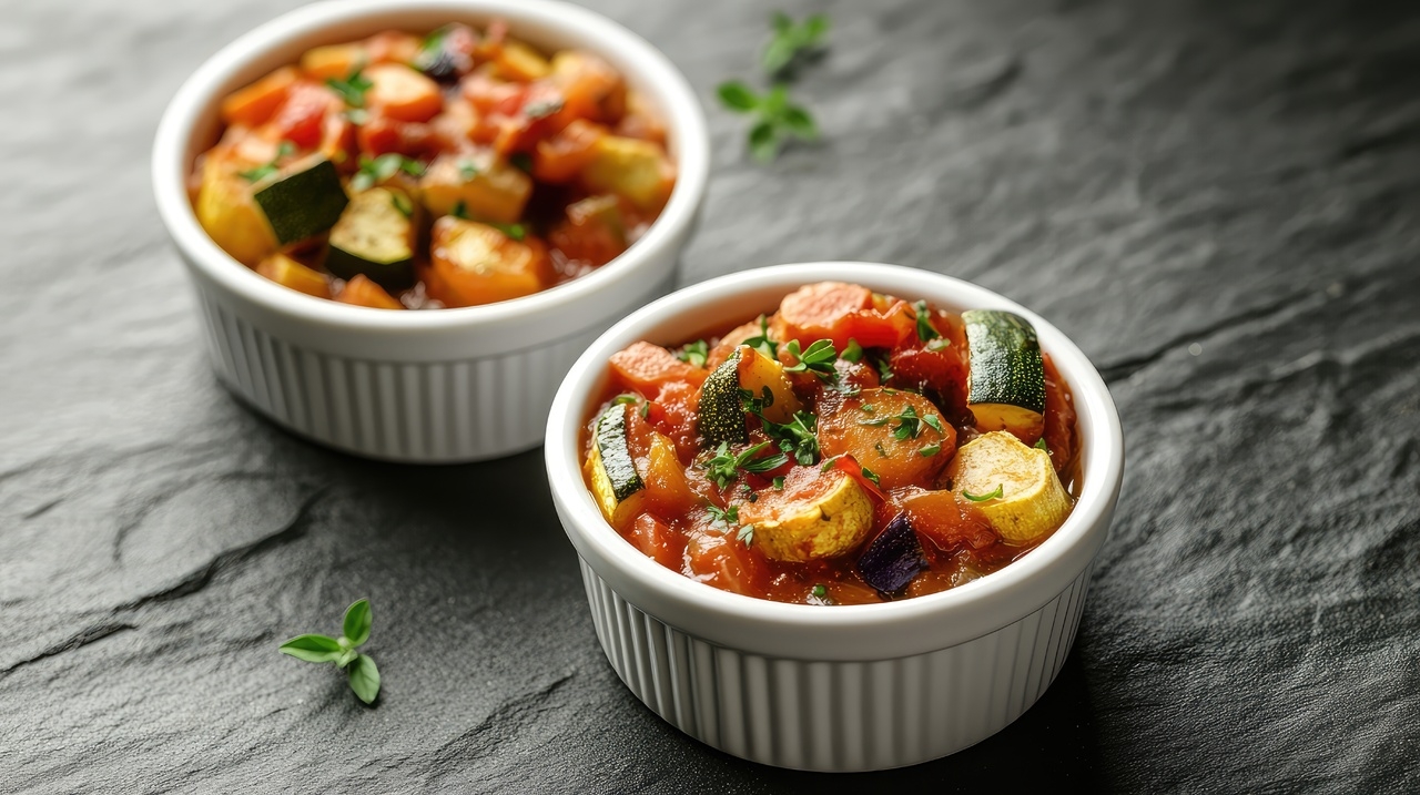 太陽の恵みを受けた群馬の夏野菜を、オリーブオイルとトマトソースで優しく煮込んだラタトゥイユ。
